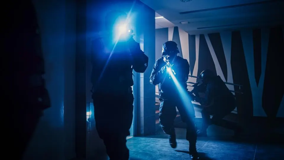 They reached the entrance, and Reynolds gave a signal for the team to spread out. Hayes moved to the left, while Reynolds and the others positioned themselves near the door. With a swift motion, Reynolds kicked it open, revealing a long hallway lined with metal doors and harsh fluorescent lights.